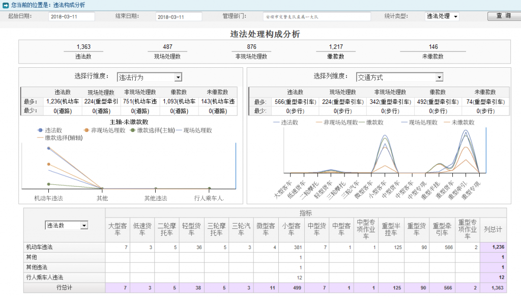 隨著社會(huì)的發(fā)展,車輛、駕駛?cè)恕⑹鹿省⑦`法的上升,六合一中的數(shù)據(jù)越來越龐大,傳統(tǒng)數(shù)據(jù)的查詢越來越慢。該系統(tǒng)從現(xiàn)有數(shù)據(jù)中挖掘其潛在的信息,統(tǒng)計(jì)數(shù)據(jù)速度快且直觀,實(shí)現(xiàn)綜合查詢、決策支持、風(fēng)險(xiǎn)防范等各種功能,為決策提供有效依據(jù),提高警務(wù)決策的及時(shí)性和有效性。系統(tǒng)利用數(shù)據(jù)倉庫技術(shù),整合機(jī)動(dòng)車、駕駛?cè)恕⒌缆方煌ㄊ鹿省⒌缆方煌ㄟ`法、非現(xiàn)場處理系統(tǒng)、劇毒化學(xué)品運(yùn)輸管理等交通管理信息系統(tǒng)數(shù)據(jù)資源,構(gòu)建“數(shù)據(jù)倉庫”,實(shí)現(xiàn)交通管理信息的“集中、整合、共享”,并以多維數(shù)據(jù)集為基礎(chǔ),為用戶查詢數(shù)據(jù)、建立決策報(bào)表提供有力的支持,提供固定格式報(bào)表生成,生成的數(shù)據(jù)文件可支持 EXECL 等格式讓,用戶從繁瑣的報(bào)表制作中擺脫出來,節(jié)省人力物力。