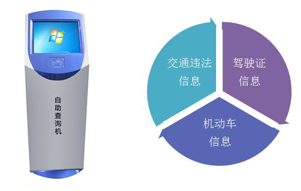 自助查詢機是一款專門針對車駕管業務研發的一種自助觸摸查詢一體機,系統操作簡單、造型新穎、高雅,具有友好的人機交互界面。系統與公安交通綜合應用平臺無縫對接,可實現多個車駕管業務的信息自助查詢功能。