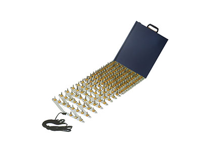 • 1.結構:由金屬材質底座和三棱形金屬刺針組成; 2.路障有效長度:5.39m; 3. 刺針有效長度:46.3mm; 4. 刺針有效間距:38mm; 5. 刺針拔出力:路障的刺針在軸向承受30N的拉力不脫落;施