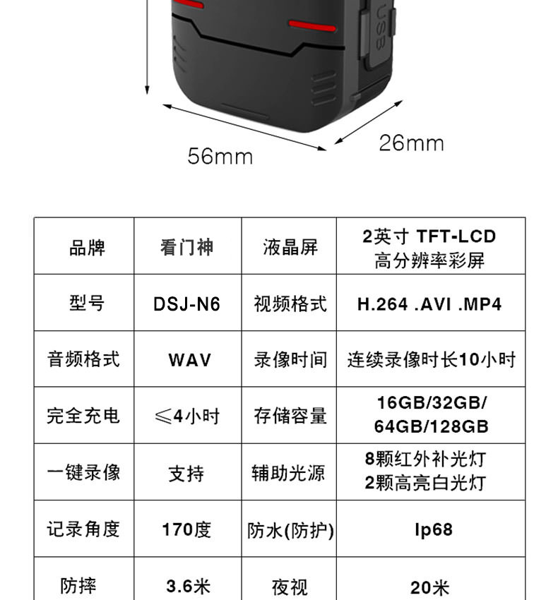 7.電池:設備采用內(nèi)置不可更換電池,設備連續(xù)錄像≥8.6小時。